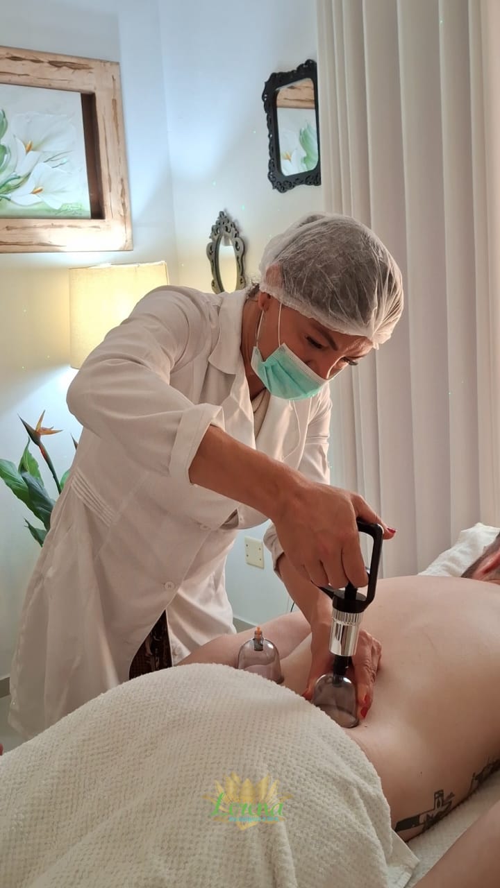 A Ventosaterapia utiliza ventosas para estimular a circulação e liberar tensões profundas. É eficaz para dores musculares, retenção de toxinas e relaxamento intenso, proporcionando leveza e bem-estar imediato.