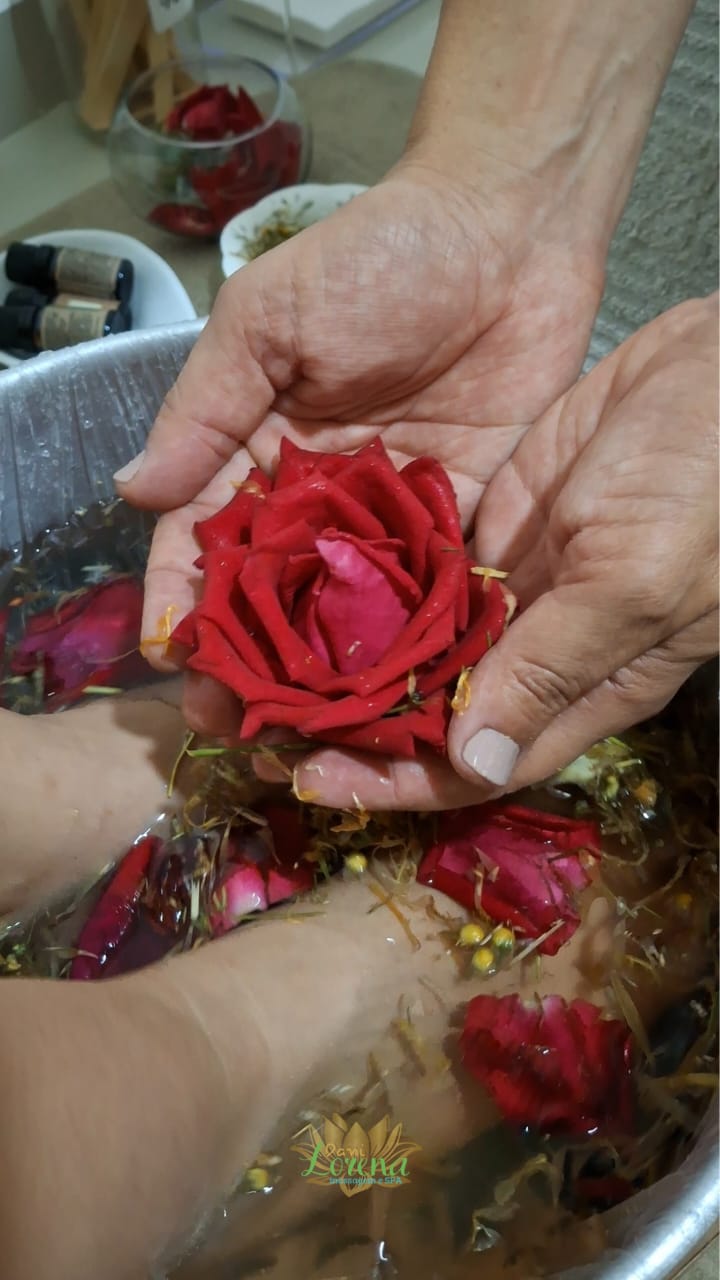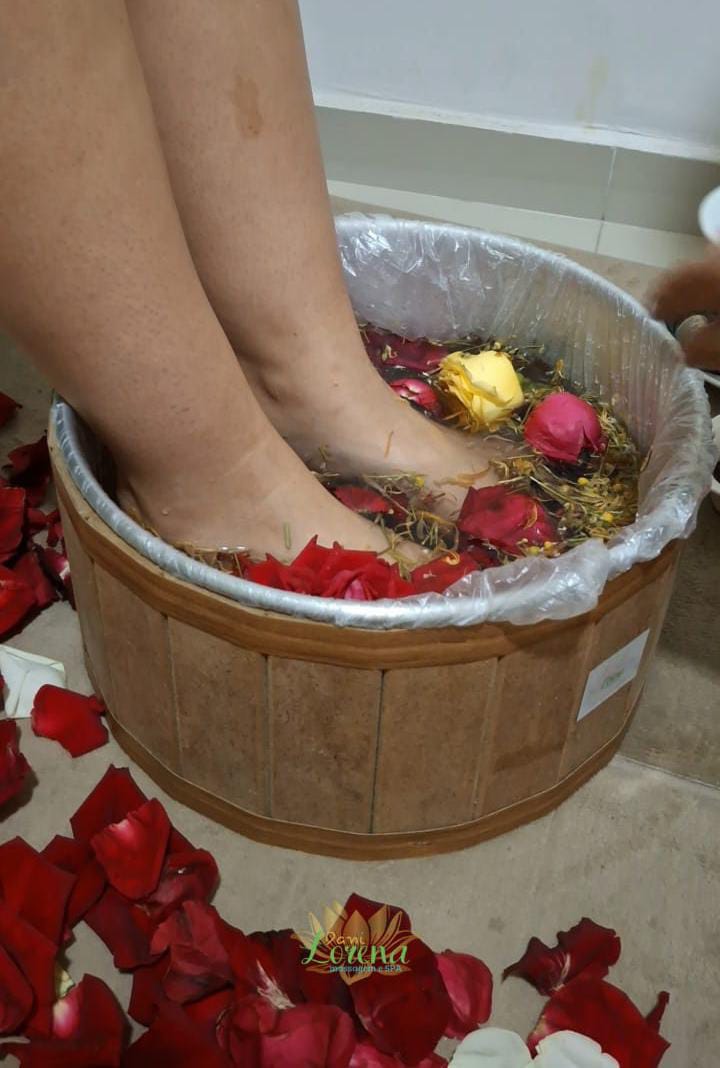 O Spa dos Pés, é um procedimento realizado com a finalidade de higienizar, esfoliar e hidratar os pés ásperos e ressecados, deixando-os limpo, macio e hidratado... É feito com imersão em água morna, com ervas, flores, sais, essências e/ou óleo (de acordo com a necessidade de cada cliente).